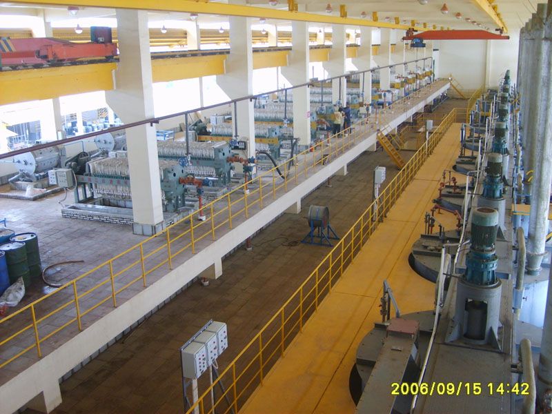 Ø For Jinchuan Project, high nickel matte is used to produce high purity cobalt sulfate by three-stage leaching (atmospheric pressure leaching +POX process) and centrifugal extraction of leaching solution to produce high-purity cobalt sulfate. Part of the raffinate, after oil removal, is subject to electrowinning to produce electrodeposited nickel, with an annual production of 15,000 t electrodeposited nickel. Part of the raffinate, after evaporation, thickening and crystallization, will be used to produce electronic-grade refined nickel sulphate products with an annual output of 30000/a. The project was put into production in 2006.